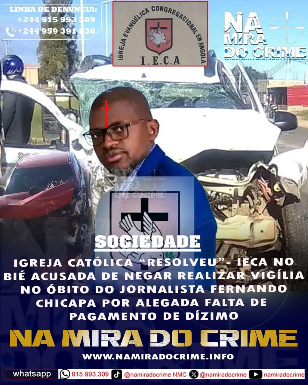 Familiares do jornalista Fernando Chicapa, falecido no dia 14 do mês em curso, vítima de acidente de viação no município do Cuíto, província do Bié, lamentam a ausência de membros da Igreja Evangélica Congregacional em Angola (IECA), alegando que não foi realizada a vigília nem culto fúnebre devido ao atraso no pagamento de um mês de dízimo.